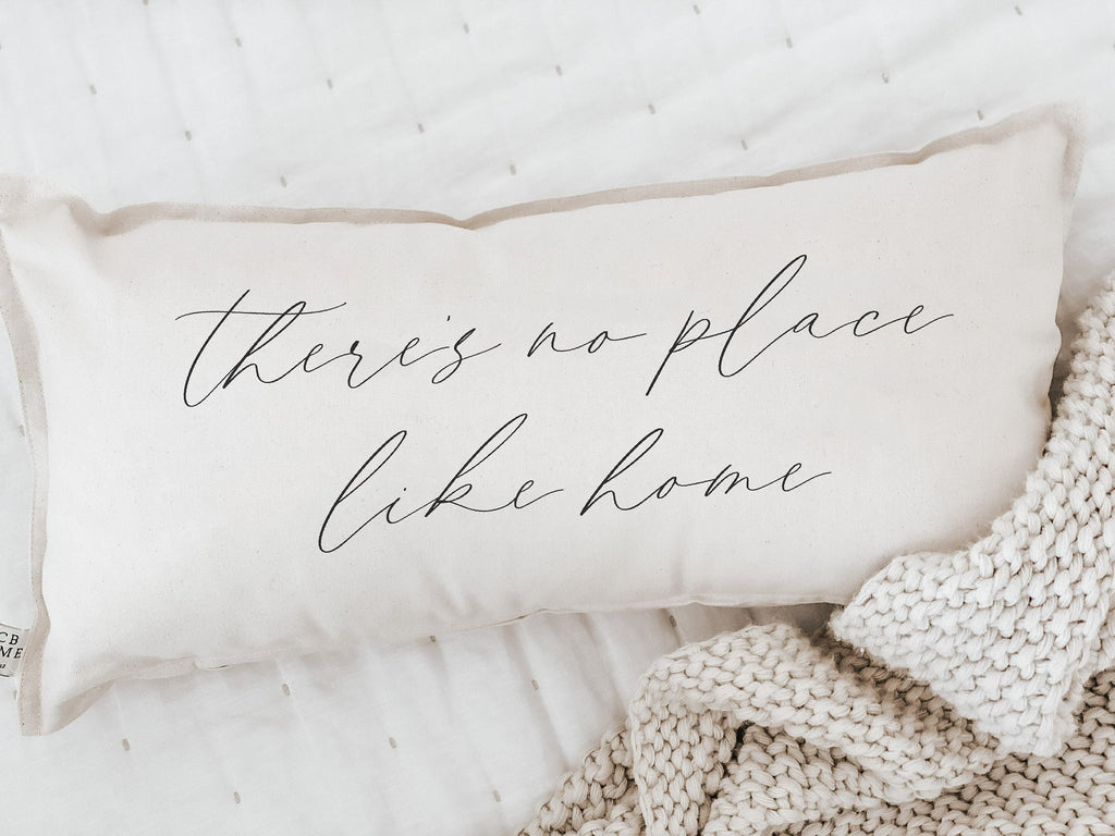 Lumbar Pillow - There's No Place Like Home - Vintage Farmhouse, Handmade in USA, 100% Organic Cotton, Calligraphy Home Decor, New Home Gift