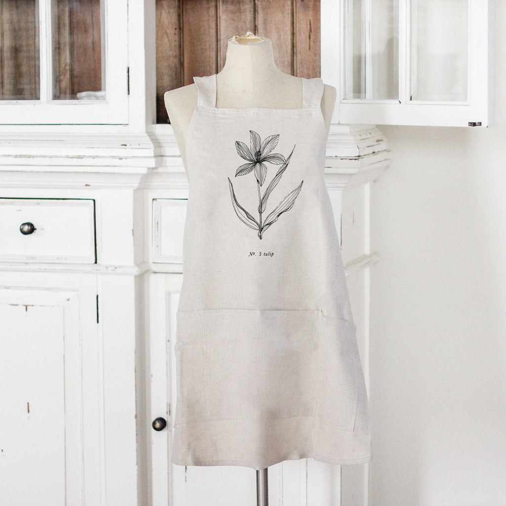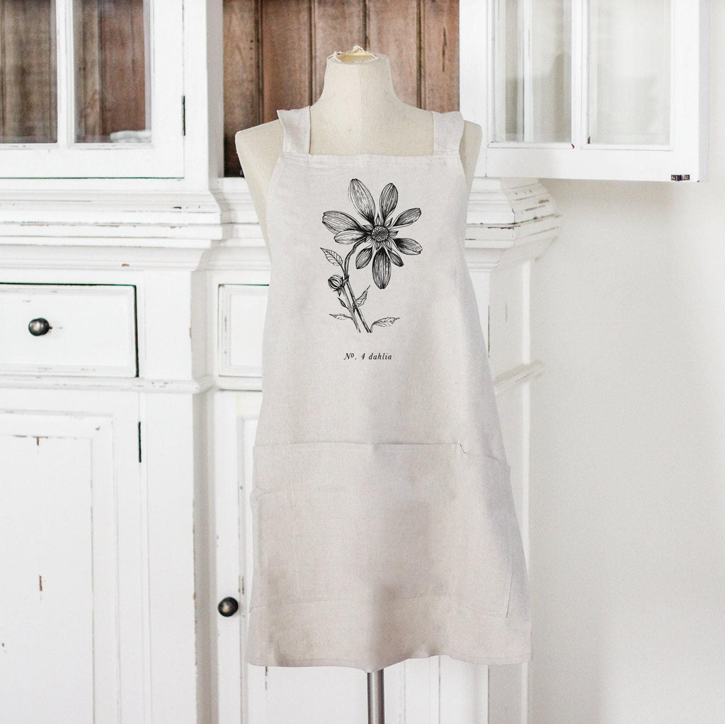 Apron - Botanical Flowers - Women's Cross back Apron with pockets, gift for mom, chef, cook, kitchen, baking