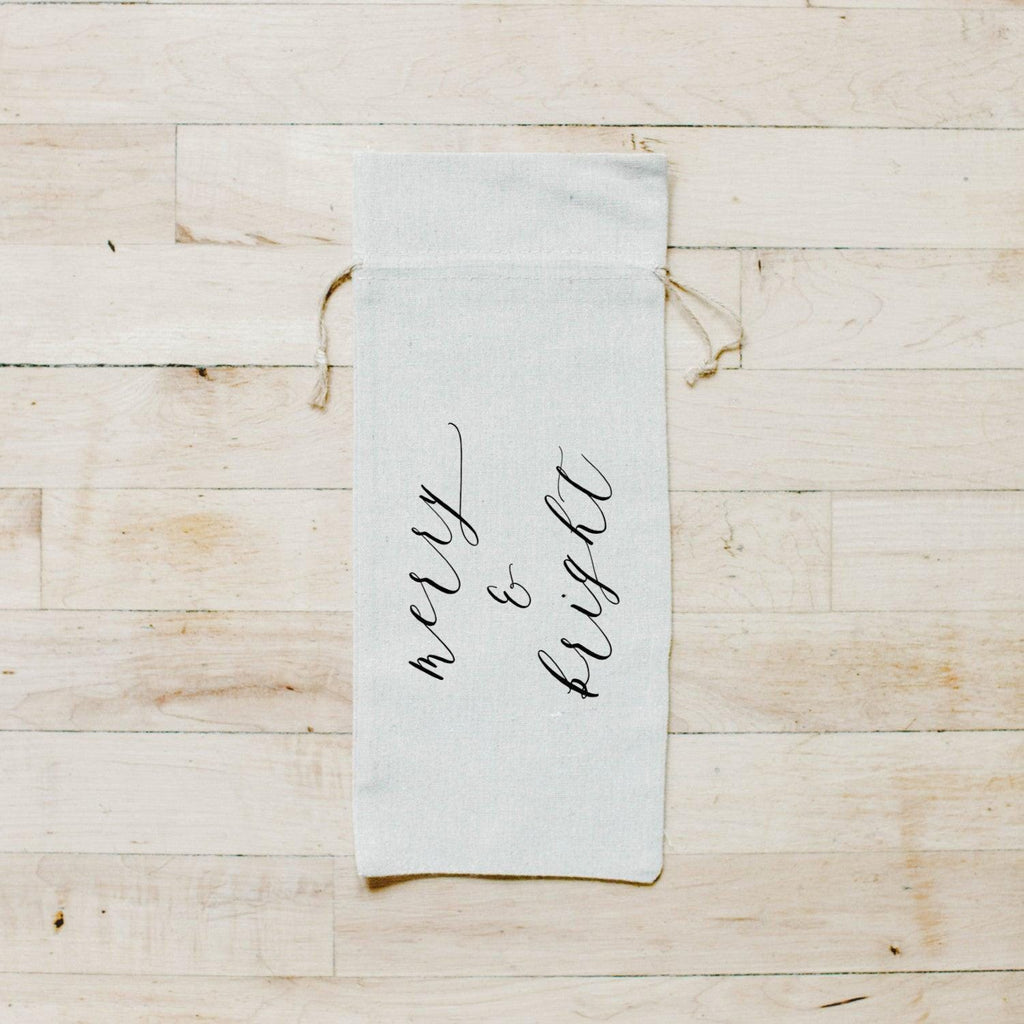 Christmas Wine Bag - Merry & Bright Wine Bag - Handmade in USA, Christmas tote, Holiday present, Seasonal gift, Yuletide Wine Cover