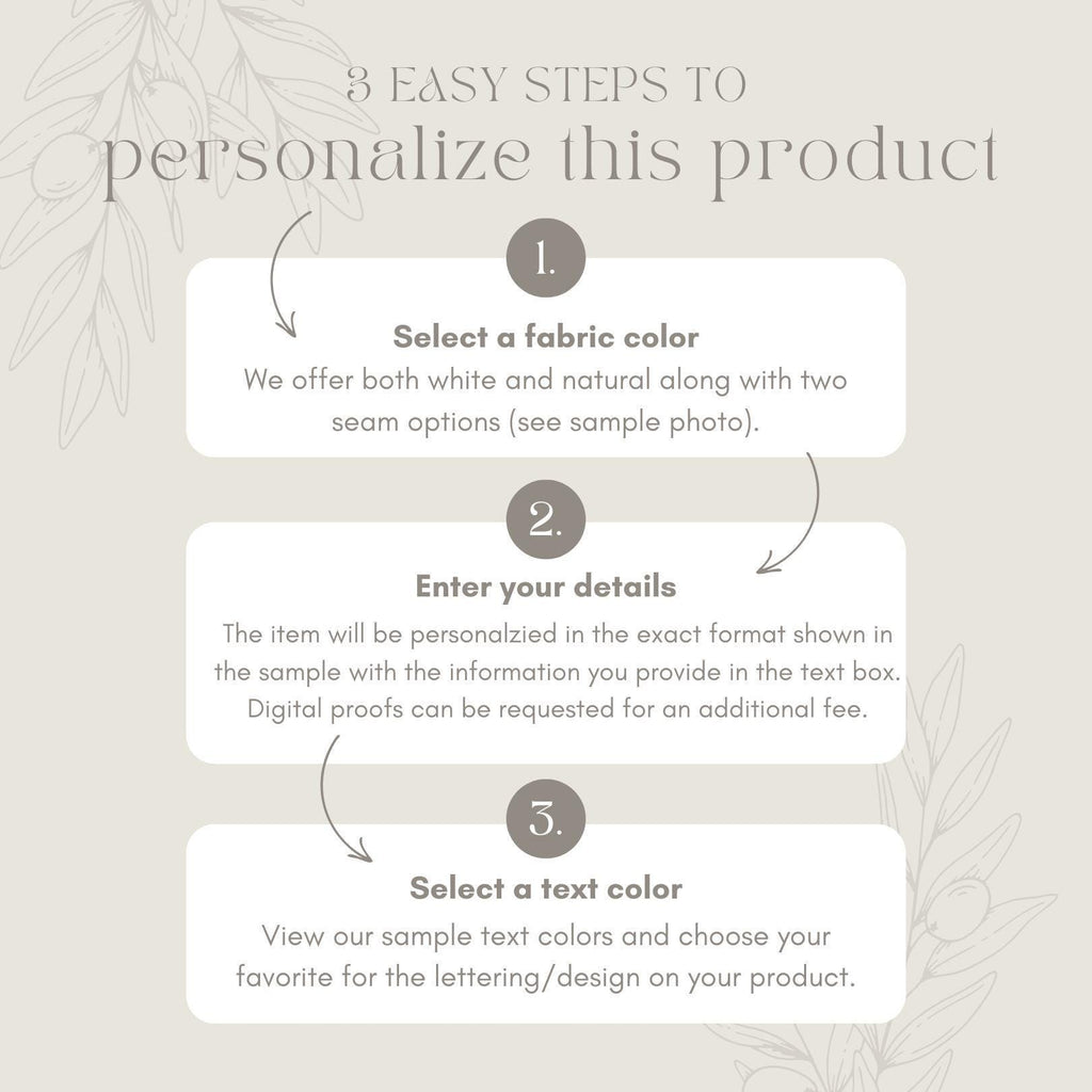 • 4. Choose a text color from our 4th listing photo and ENTER IT IN THE PERSONALIZED INFO SECTION.