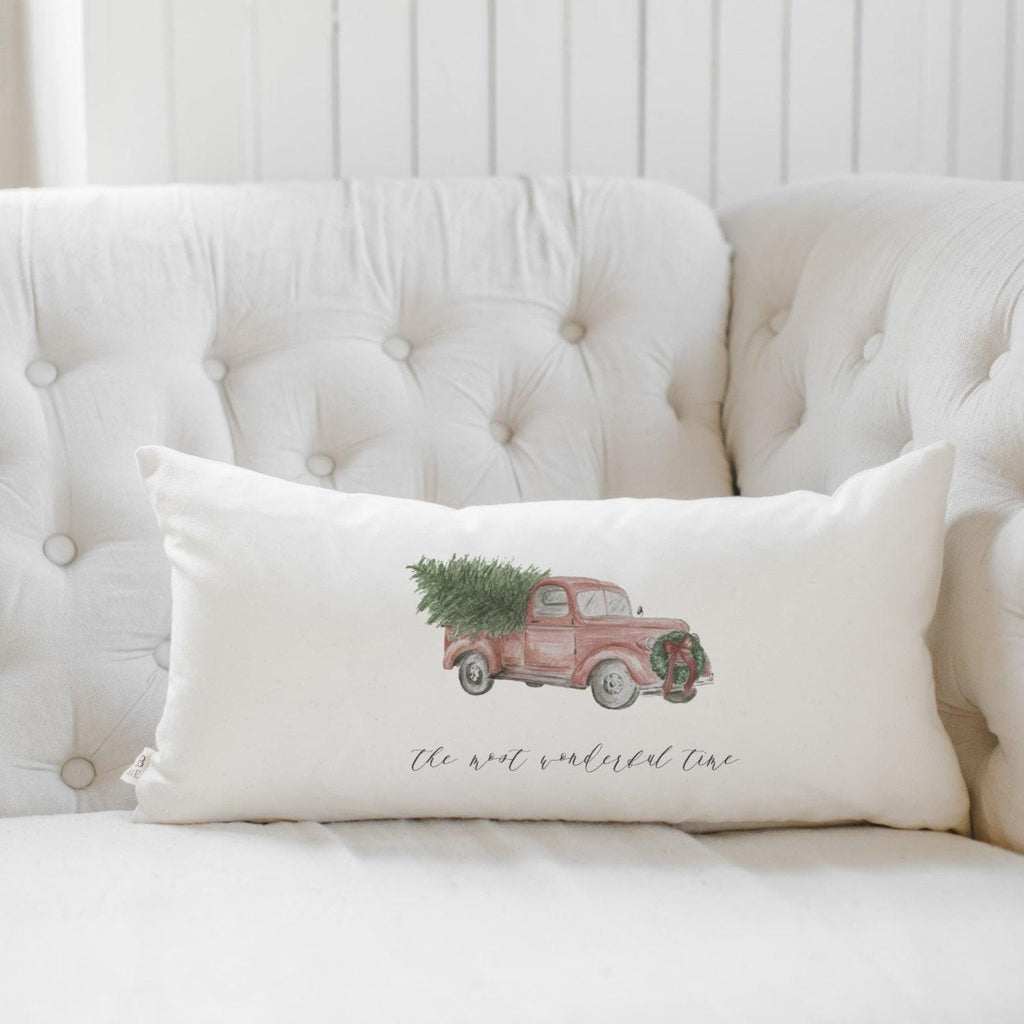 Christmas Lumbar Pillow - The Most Wonderful Time of the Year, Handmade in USA, Watercolor Home Decor, Seasonal Decor, Vintage, Farmhouse