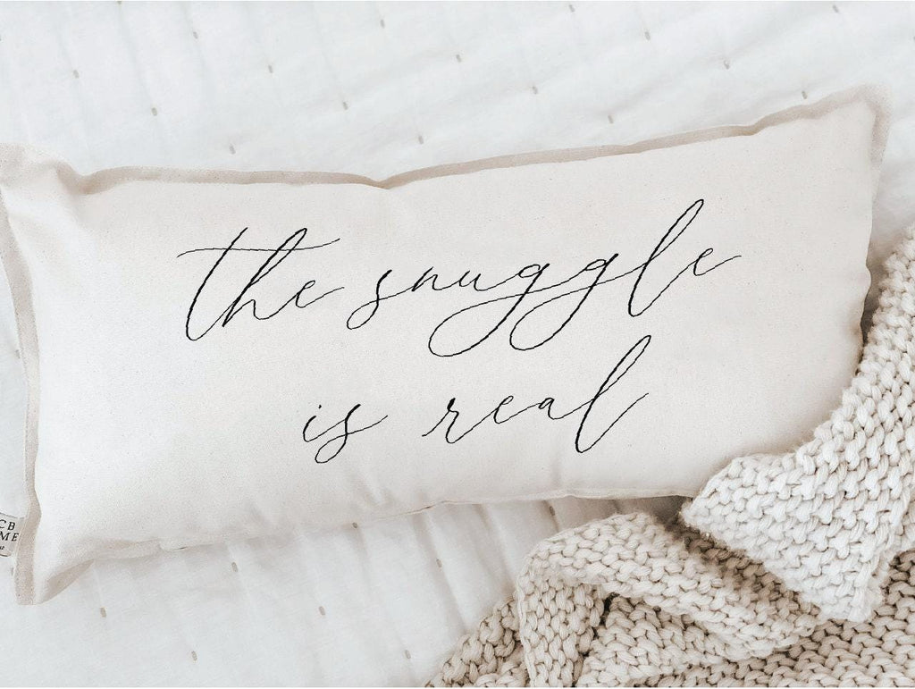 The Snuggle is Real Lumbar Pillow: Farmhouse Lettered Cushion Cover