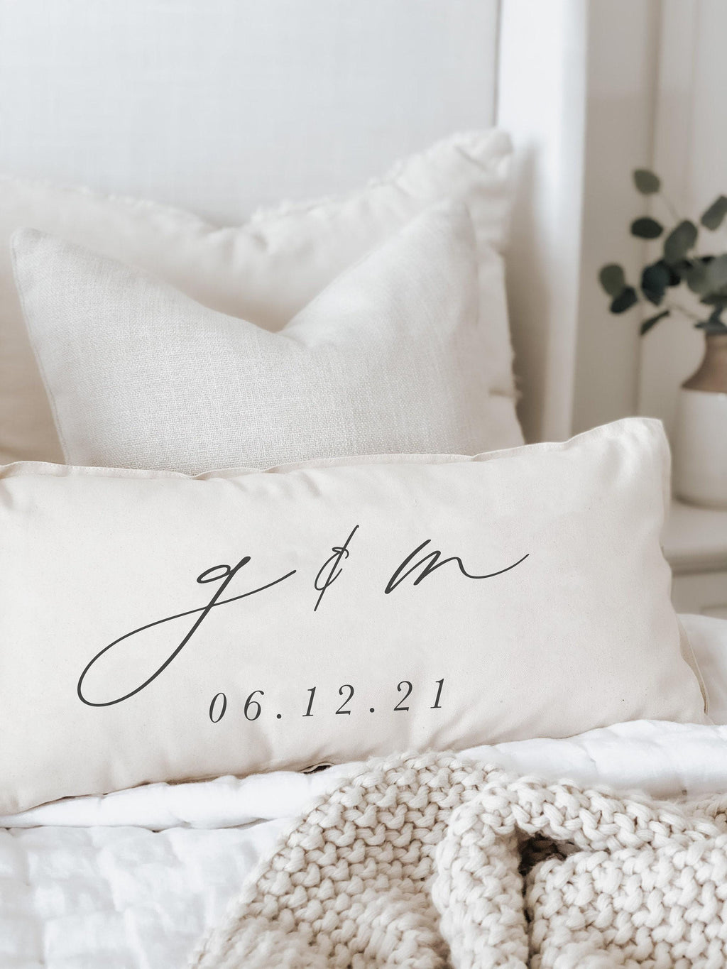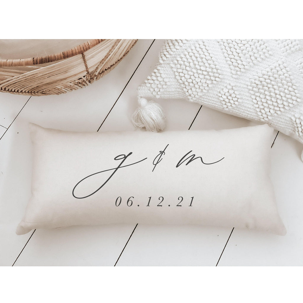 Lumbar Pillow - Personalized Two Initials and Date - Farmhouse Style, home decor, wedding gift, housewarming gift, throw pillow