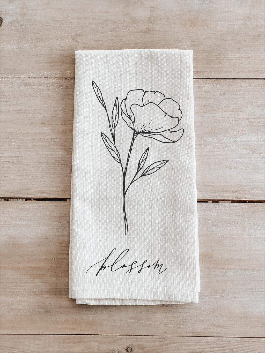 Kitchen Towel - Blossom Wildflower - Made in the USA, housewarming gift, wedding favor, kitchen decor, spring decor, calligraphy design