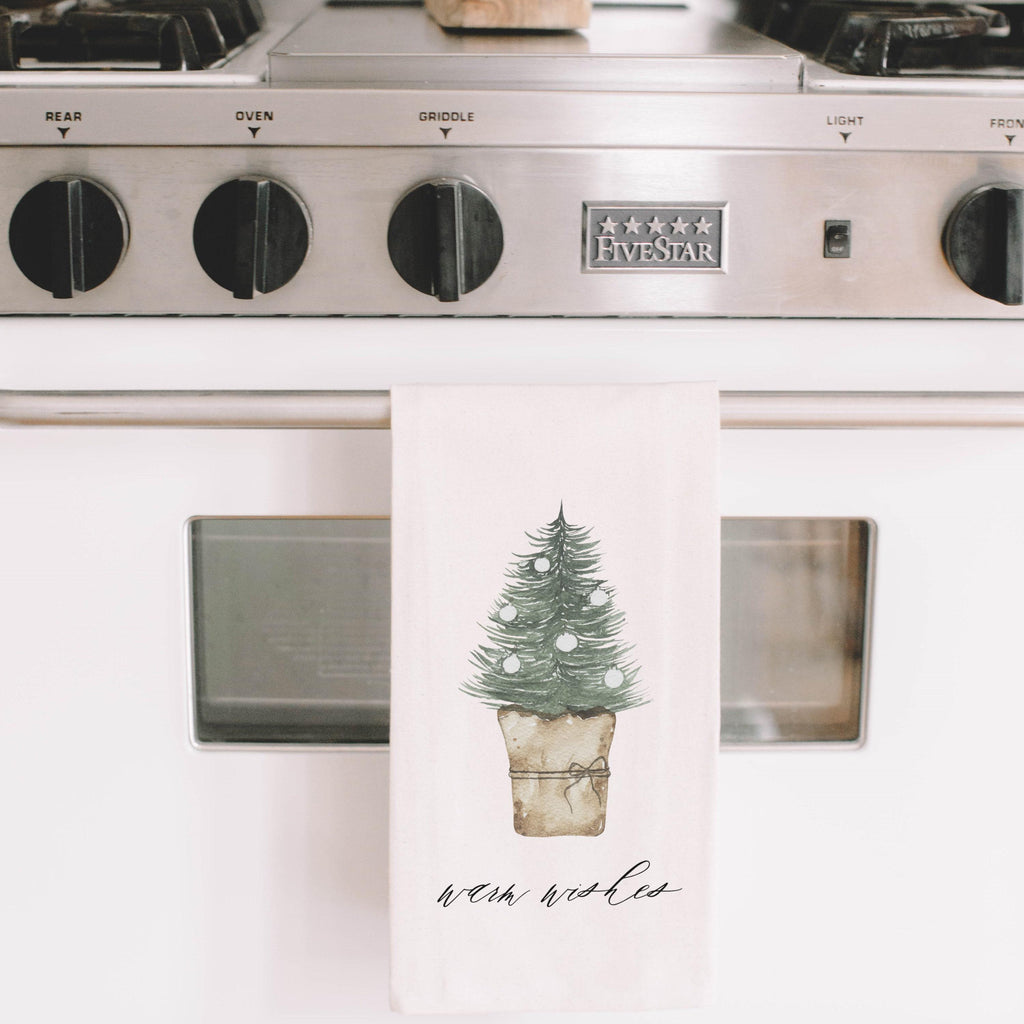 Christmas Watercolor Tea Towel - Warm Wishes Watercolor, kitchen linen, holiday present, Seasonal, Cute, Winter gift, cozy decor