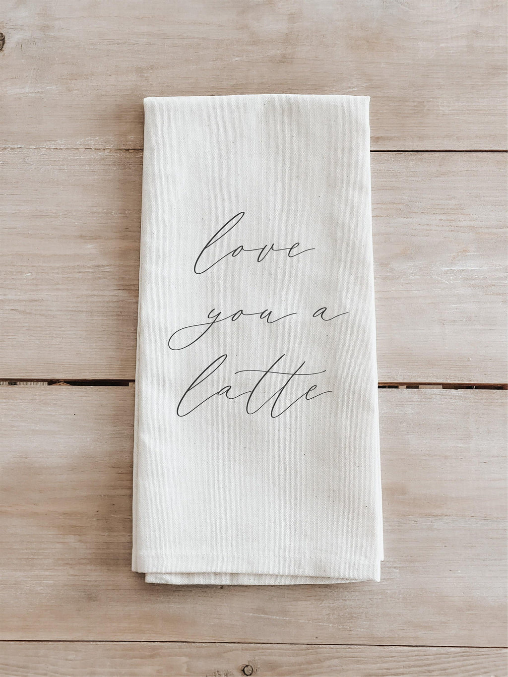 Love You a Latte Kitchen Towel: Organic Cotton Calligraphy Design