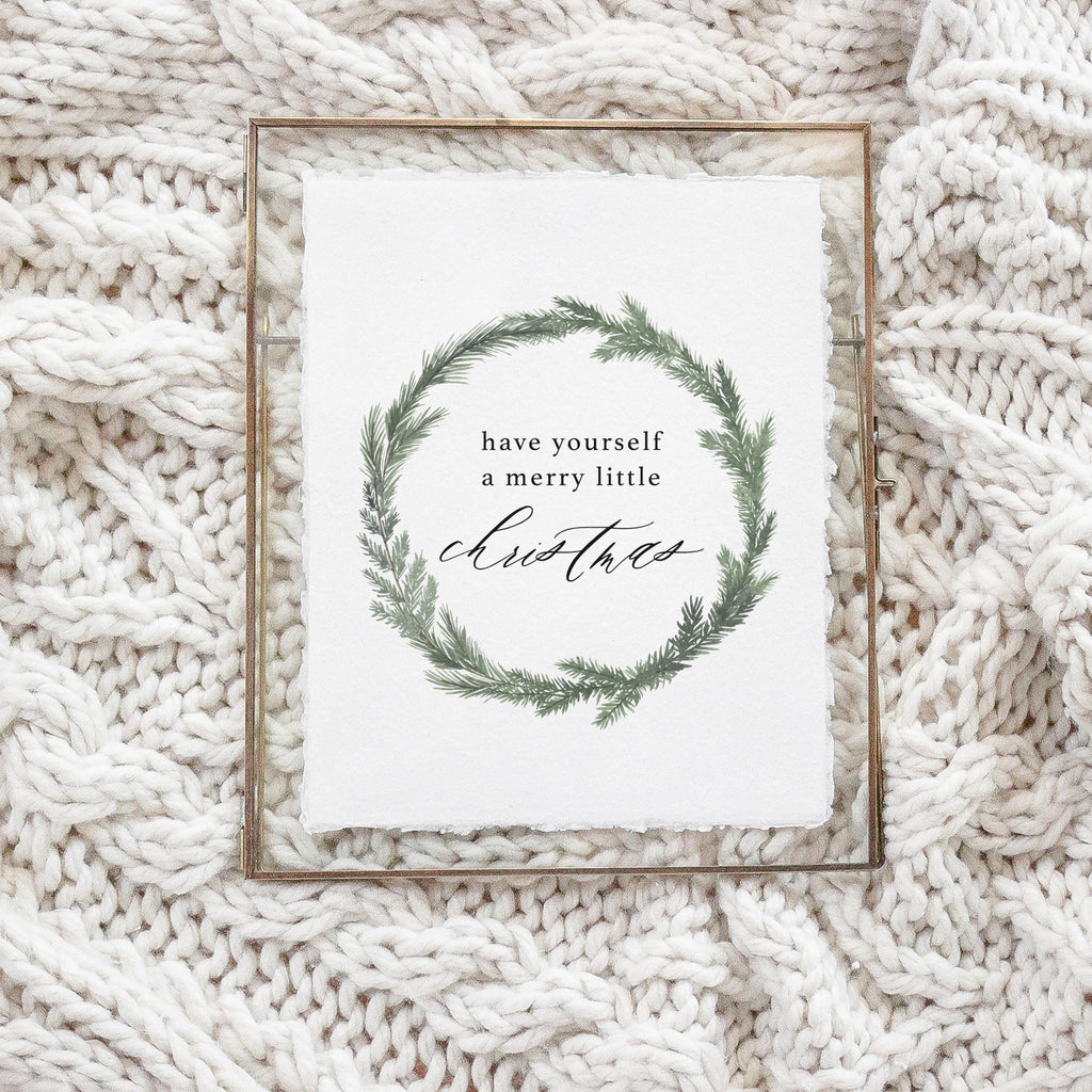 Calligraphy Print - Have Yourself A Merry Christmas Wreath Watercolor - Vertical, Winter Decor, Gift, Holiday Gift, Seasonal Home Decor