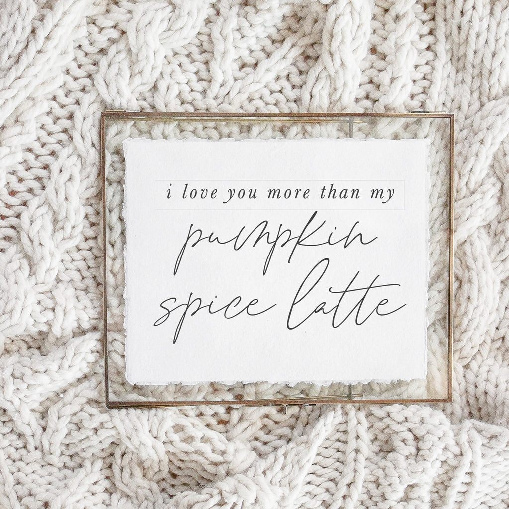 Calligraphy Print - I Love You More Than My PSL, modern calligraphy, home decor, 5x7 and 8x10, wall hanging, standing, fall decor, autumn