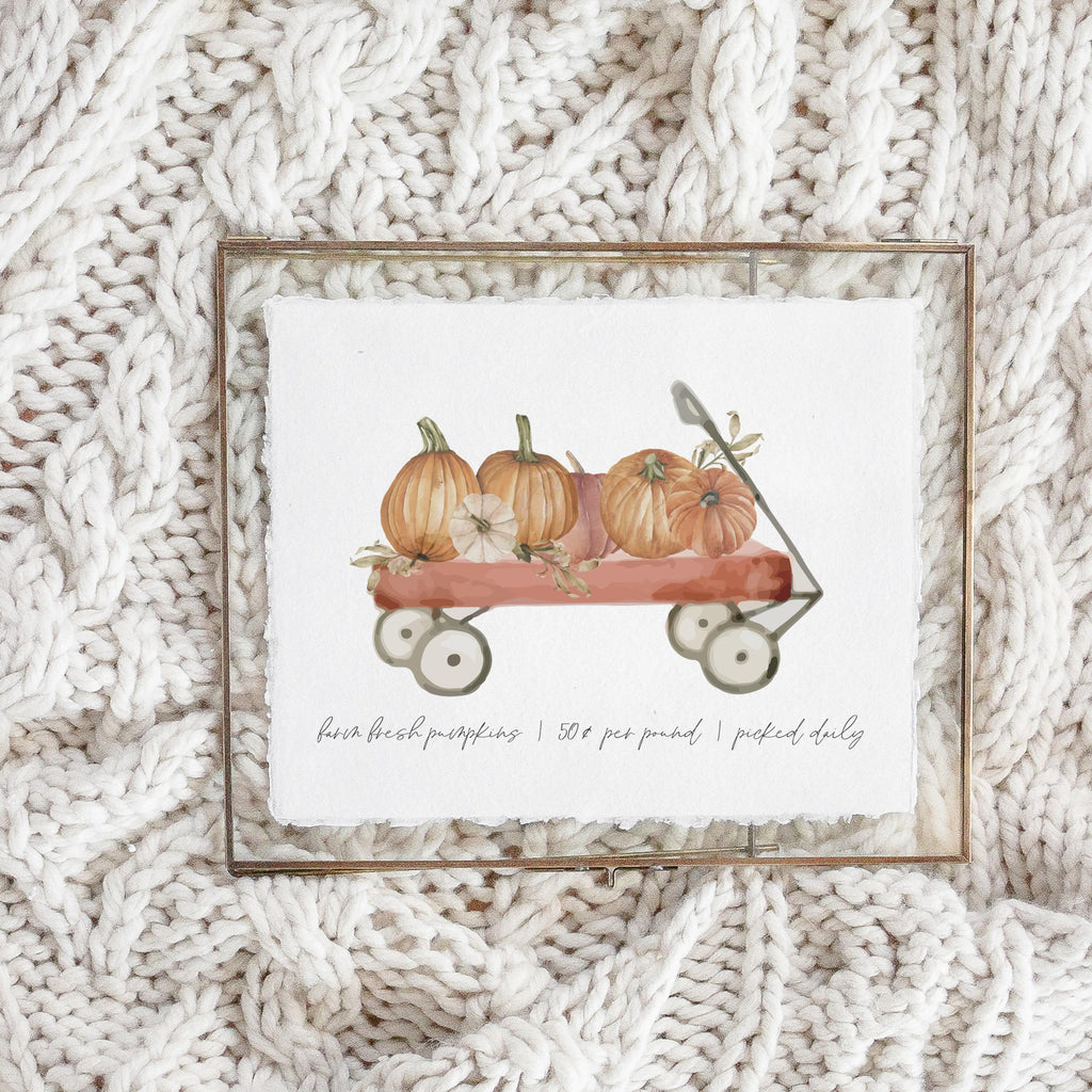 Fall Calligraphy Print - Pumpkin Wagon Watercolor, Fall Decor, Gift, Holiday Gift, Seasonal Home Decor, Fall gifts