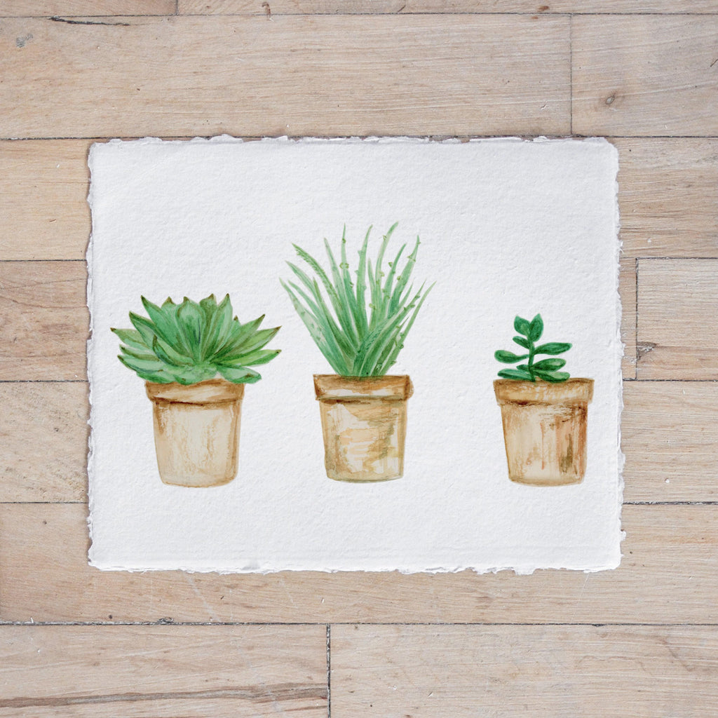 Calligraphy Print - Succulent Pots Watercolor - Horizontal