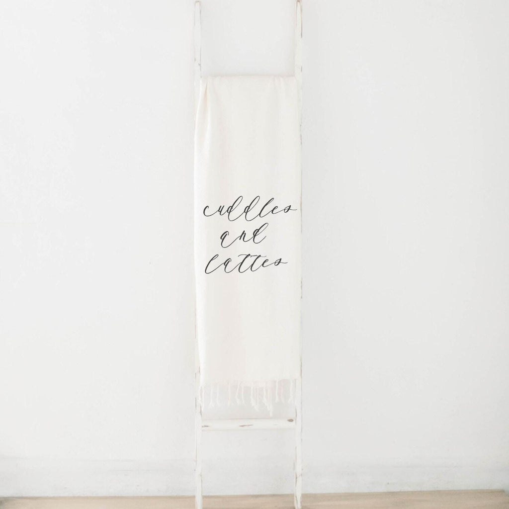 Throw Blanket - Cuddles + Lattes, housewarming gift, decorative blanket, cozy, fall decor, autumn designs, soft and comfy