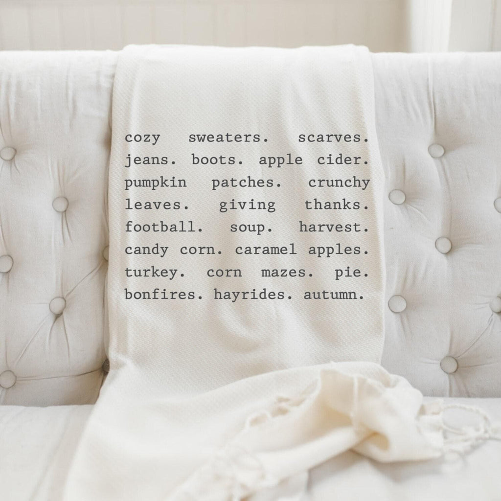Throw Blanket - Fall Things, housewarming gift, decorative blanket, cozy, fall decor, autumn designs, soft and comfy