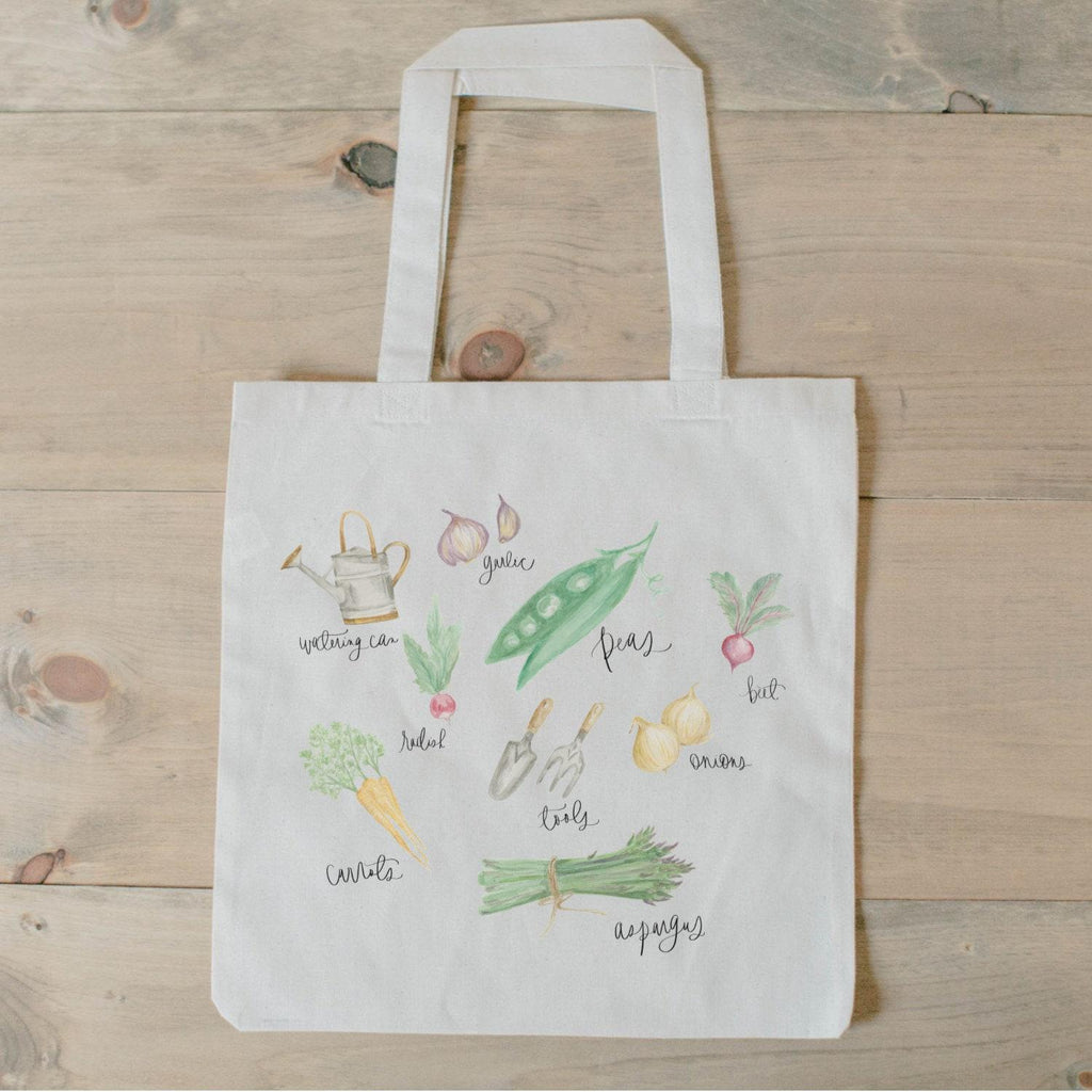 Vegetable Watercolor Tote Bag: Organic Cotton Market Bag