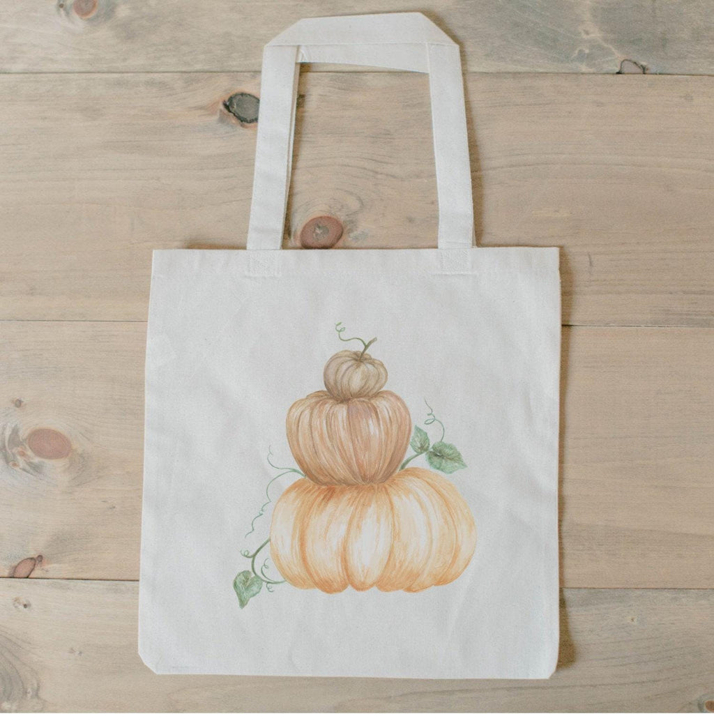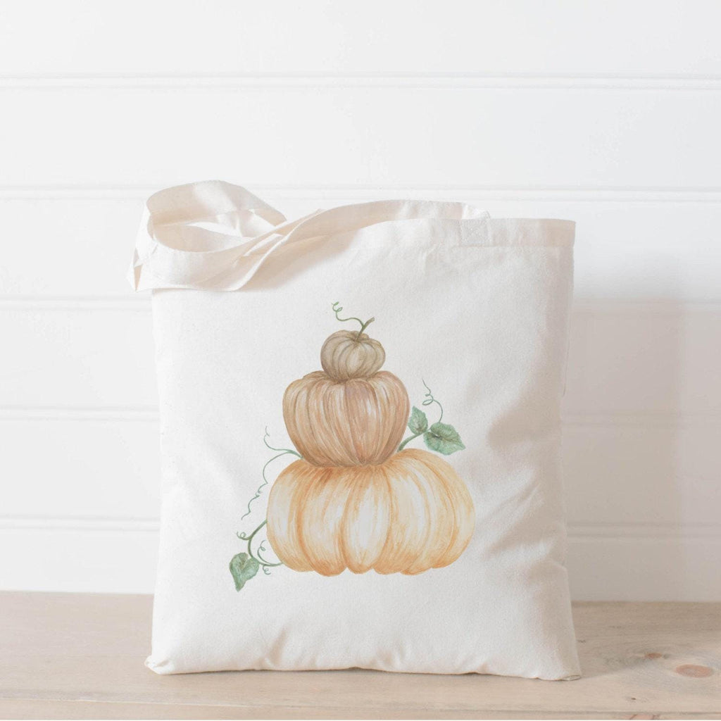 Tote Bag - Pumpkin Stack Watercolor, fall decor, apple picking, autumn essentials, housewarming gift, lifestyle decor, accessory bag
