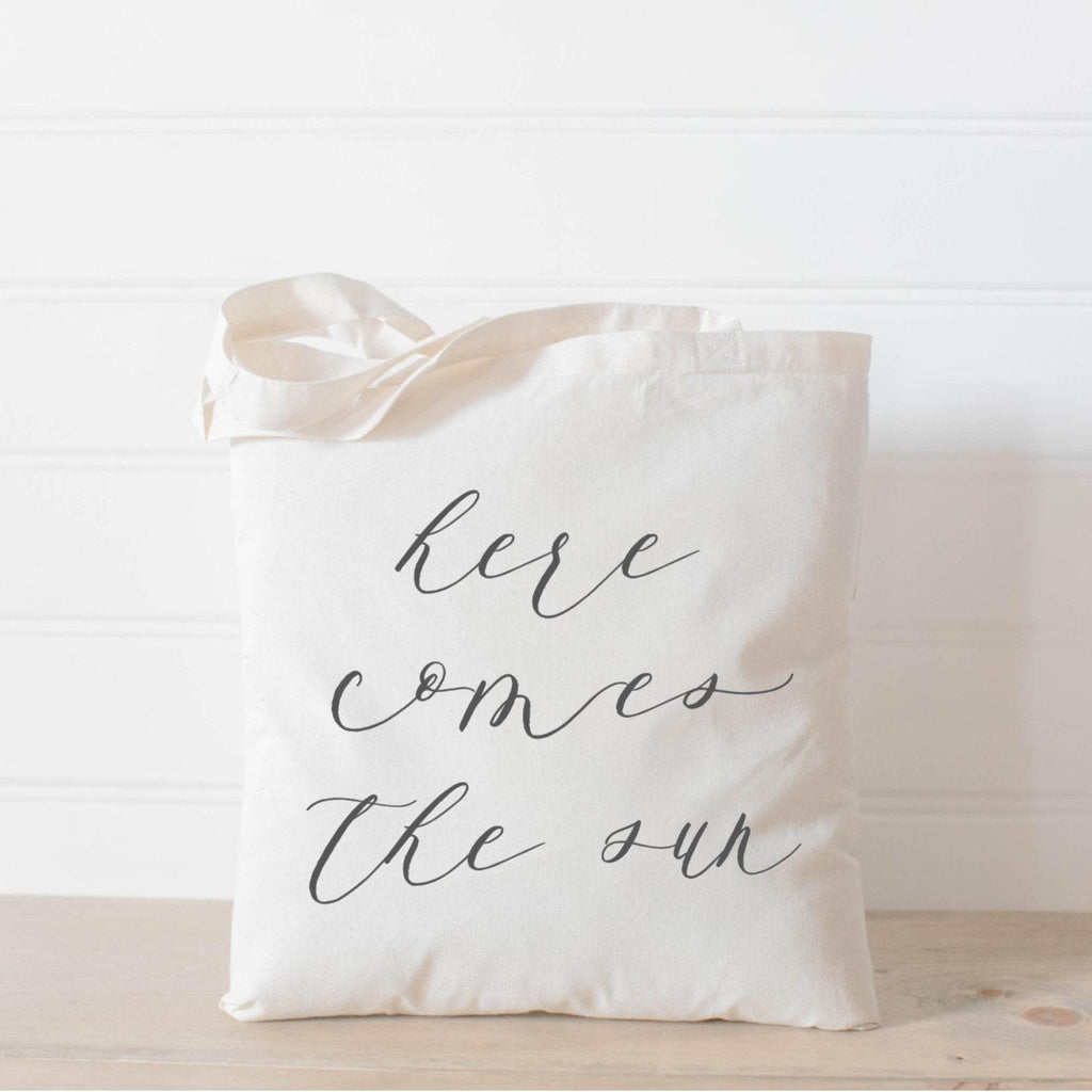 Here Comes the Sun Tote Bag: Organic Cotton Market Bag