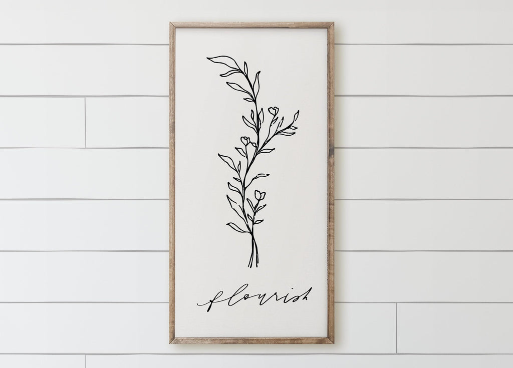 Wood Framed Sign - Flourish Wildflower, rustic home decor, gallery wall, housewarming gift, framed decor, farmhouse style, spring decor