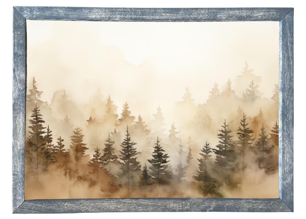 Wood Framed Print - Warm Toned Trees - Handmade in USA, gallery wall art, holiday wall art, christmas decor, framed decor
