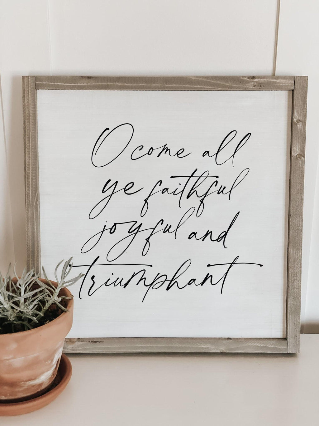Christmas Wood Framed Sign - O Come All Ye Faithful - Square - Christmas rustic home décor, gallery wall, housewarming gift, framed art