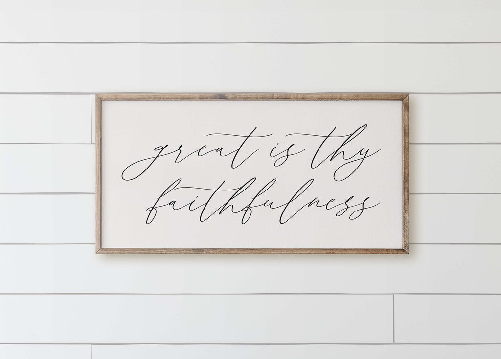 Wood Framed Sign - Great Is Thy Faithfulness, rustic home decor, gallery wall, housewarming gift, framed decor, farmhouse style, wall decor