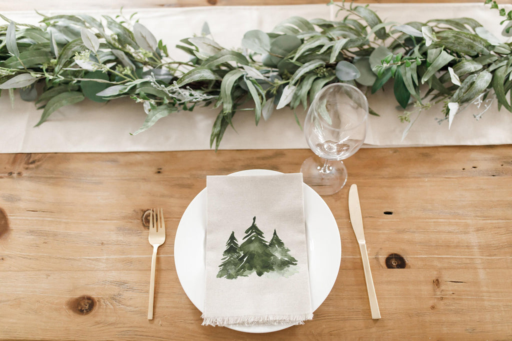 Christmas Napkin - Trees Trio - Handmade in USA, home decor, housewarming gift, tableware, table scene, place setting, table line