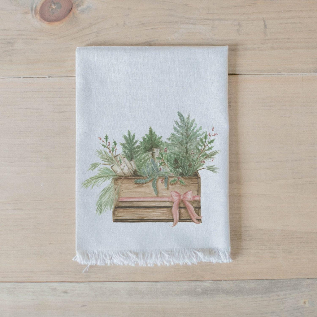 Christmas Napkin Set - Greens in Crate Watercolor, Decor, Housewarming, Tableware, Place Setting, Table Setting, Seasonal Decor