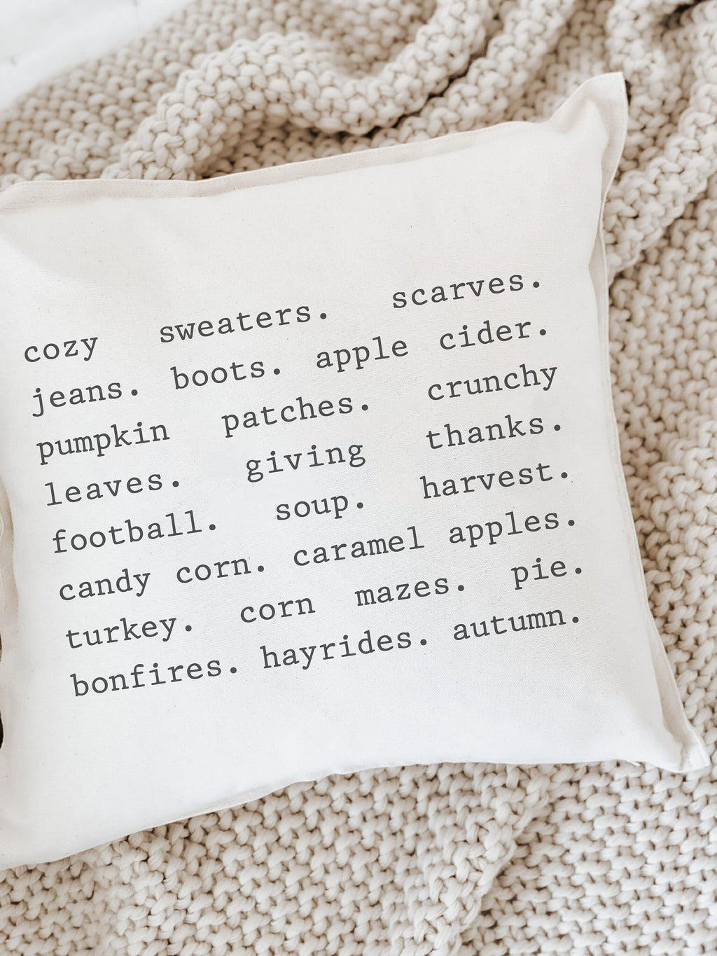 Throw Pillow - Fall Things - Autumn home decor, fall decor, housewarming gift, cushion cover, throw pillow, seasonal pillow