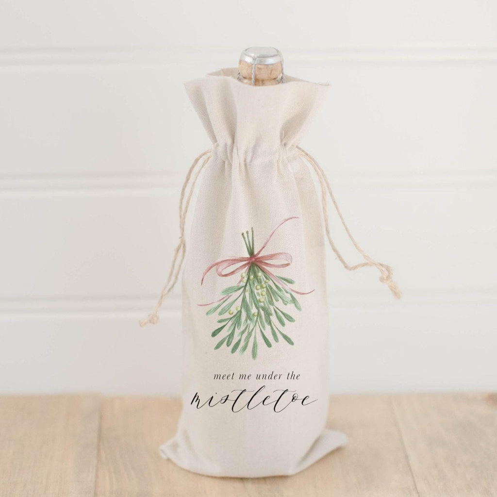 Christmas Wine Bag - Meet Me Under the Mistletoe Watercolor, Seasonal Decor, Christmas Gift for Her, Present, Wine Lover, Hostess Gift